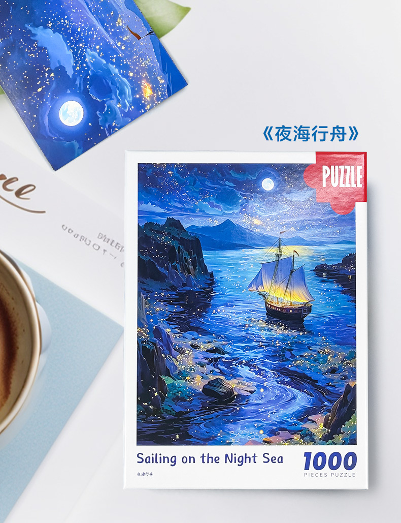 拼圖名稱:夜海行舟66-050 拼圖尺寸:380*260MM 拼圖片數:細微灰卡1000片 加工方式:廠規、來圖定制 包裝尺寸:180*130*50mm
